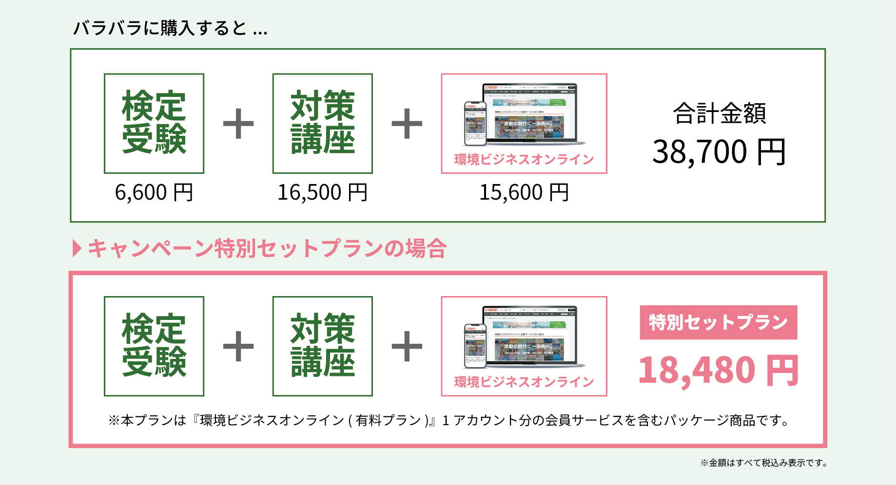 ・セットとして含まれる『環境ビジネスオンライン』(有料プラン)はオンラインプラン(1年間)の1アカウントとなります。